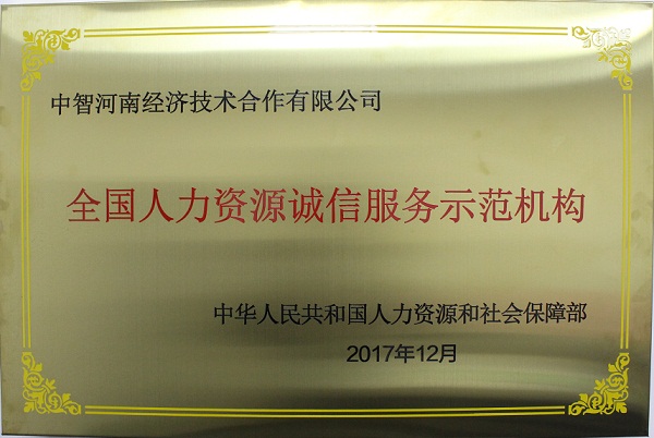 “全国人力资源诚信服务示范机构”牌匾