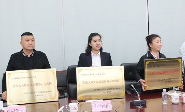中智河南公司受邀到河南省人社厅接受“全国人力资源诚信服务示范机构”授牌